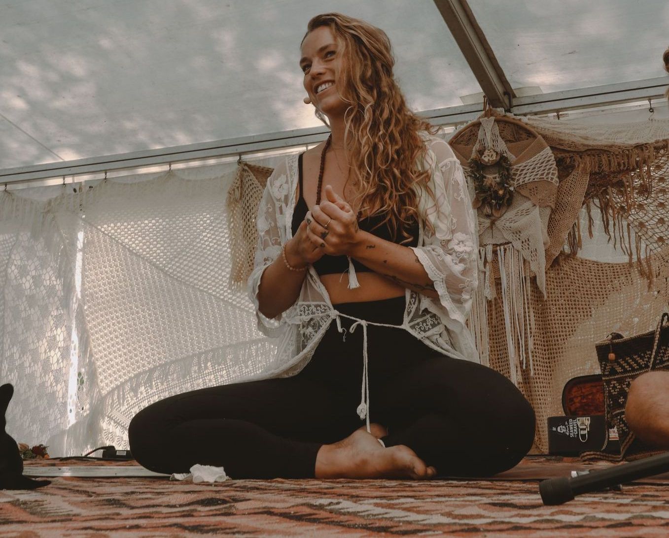 All her experiences have guided her, step by step, toward learning to accept the gift of yoga. She's not desperately trying to become a better person. She wants to make this individual experience available to others as well, so that we can be and heal together as a collective.